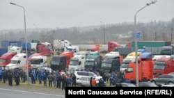 Сегодня дагестанские водители попытались повторить автопробег, но их фуры блокировали машины силовиков.